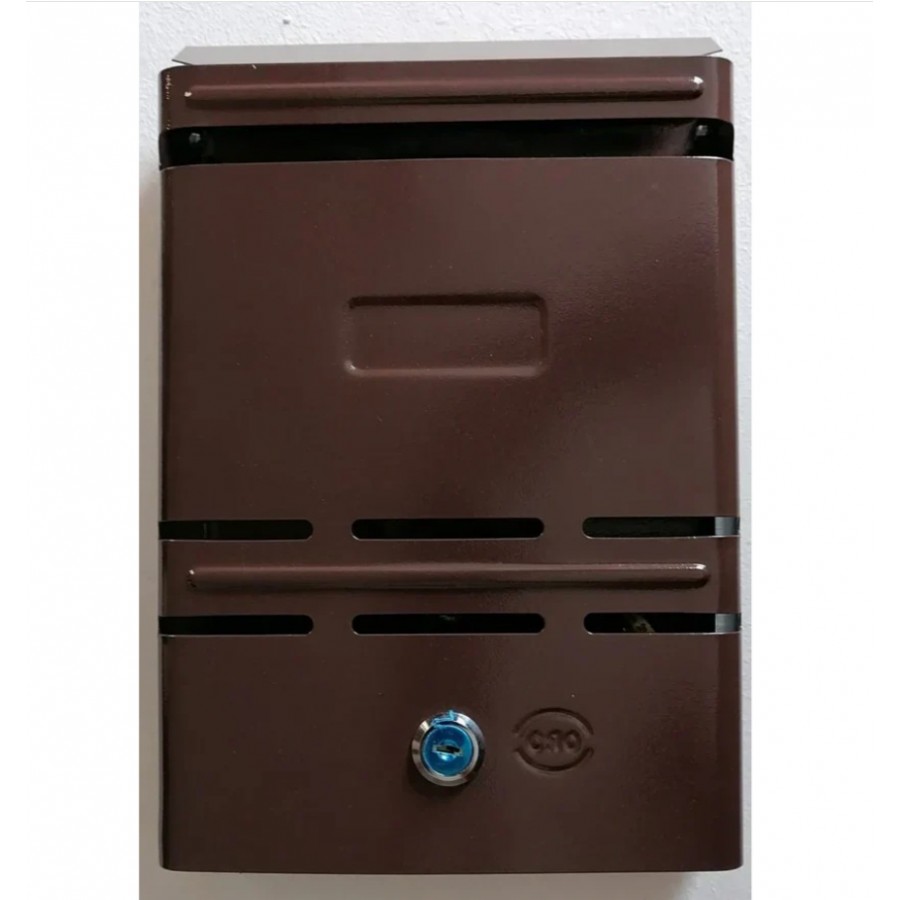 - Cutia postala este confectionata din metal acoperita de un strat de vopsea maro,are usa de vizitare cu incuietoare si o fanta pe partea superioara pentru introducerea corespondentei.