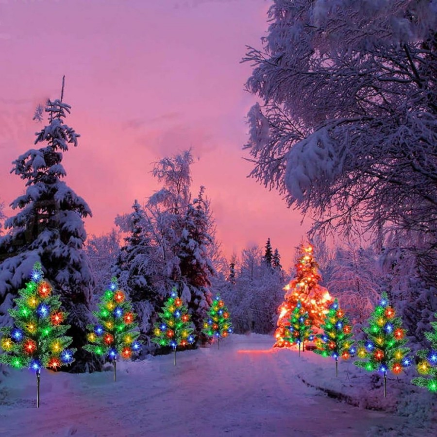 Set 4 x Lampa solara LED de Craciun, brad impodobit