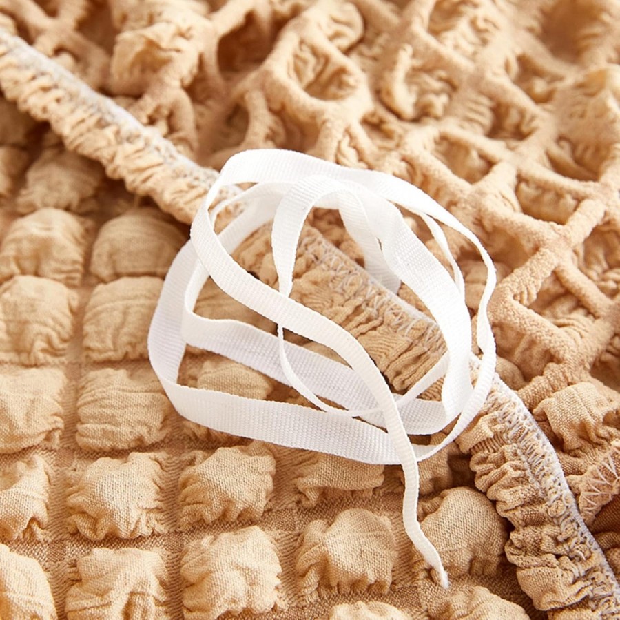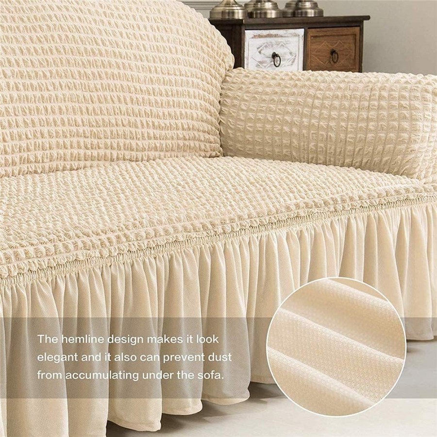 Husa creponata universala canapea 3 locuri, bej, cu volane, bumbac, rezistenta la apa