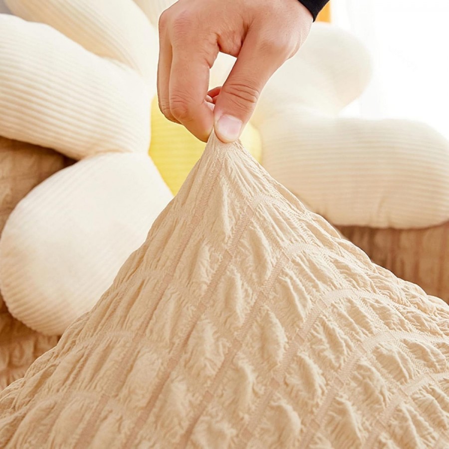 Etichete: Husa creponata universala canapea 3 locuri, bej, cu volane, bumbac, rezistenta la apa, Textile si Covoare, Articole pentru casa