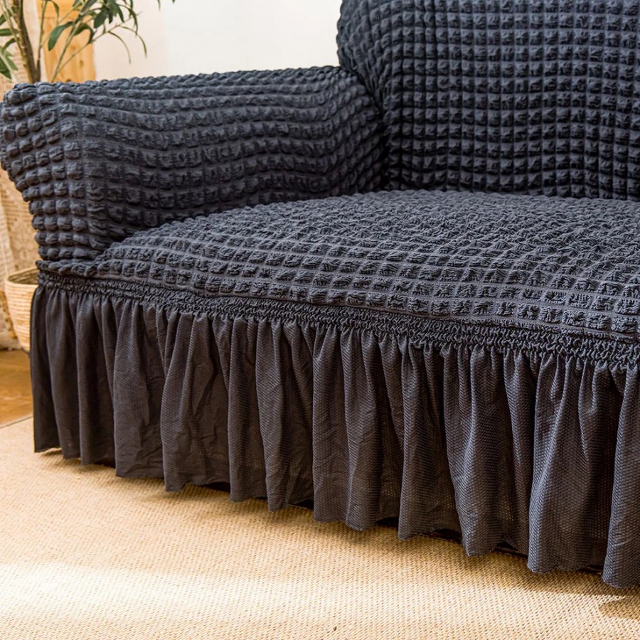 Etichete: Husa creponata universala canapea 3 locuri, gri inchis, cu volane, bumbac, rezistenta la apa, Decoratiuni interioare, Articole pentru casa