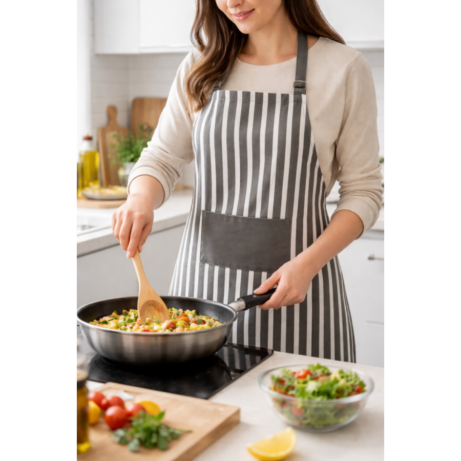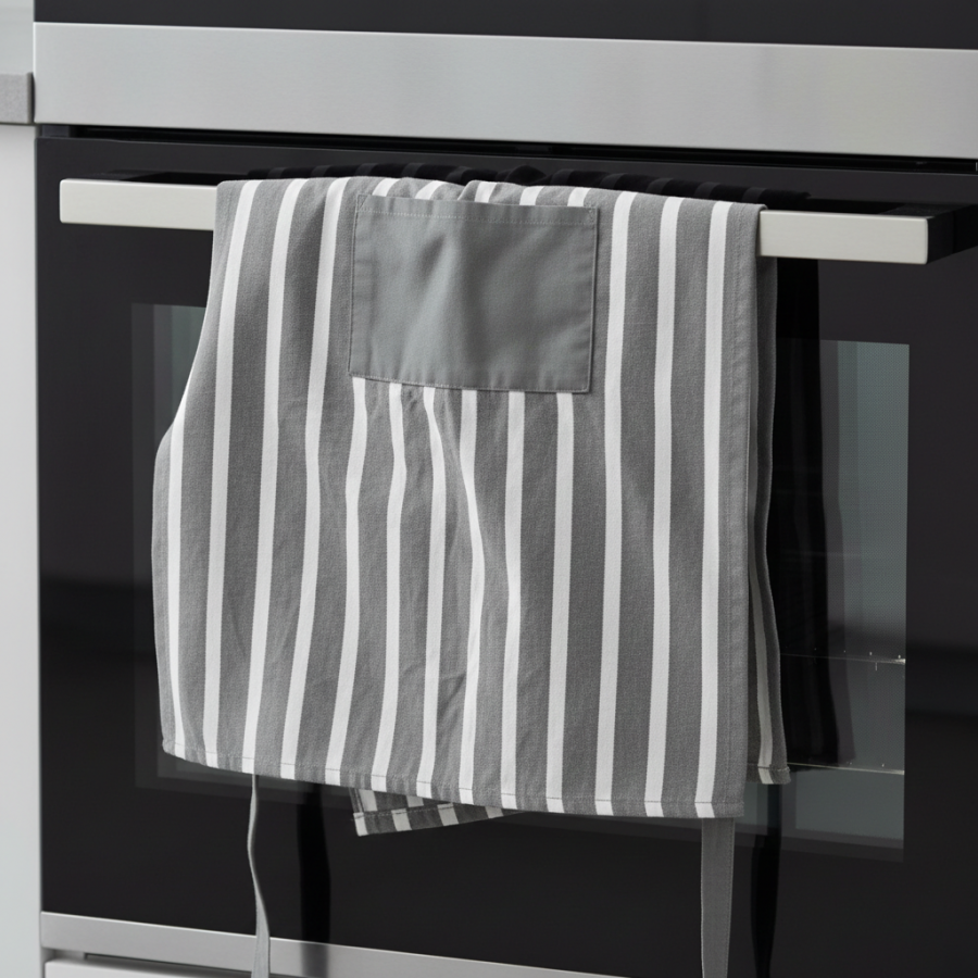 Etichete: Sort de bucatarie, gri cu dungi albe si buzunar, 55x75 cm, Accesorii imbracaminte, Imbracaminte
