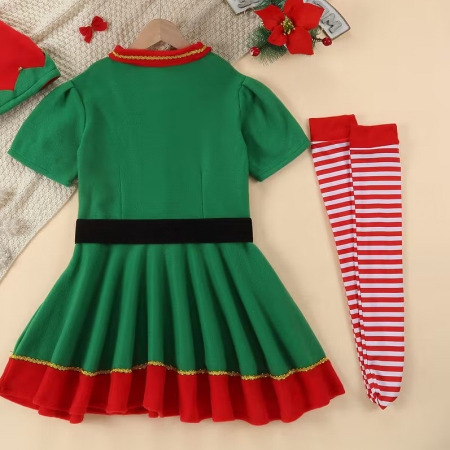 Acest costum de spiriduș pentru fete este ideal pentru a crea amintiri prețioase în primii ani ai fetiței tale. Realizat din poliester moale și delicat, oferă confort maxim pentru pielea sensibilă a bebelușilor și un aspect fermecător, perfect pentru sesiuni foto festive, petreceri tematice sau momente speciale în familie. Setul include haină, cordon, căciuliță și șosete lungi, toate concepute pentru a recrea imaginea unui spiriduș jucăuș și vesel. Culoarea verde vibrantă și designul adorabil vor încânta pe toată lumea, stimulând imaginația și aducând zâmbete. Este o alegere minunată pentru a face Crăciunul magic și plin de veselie!