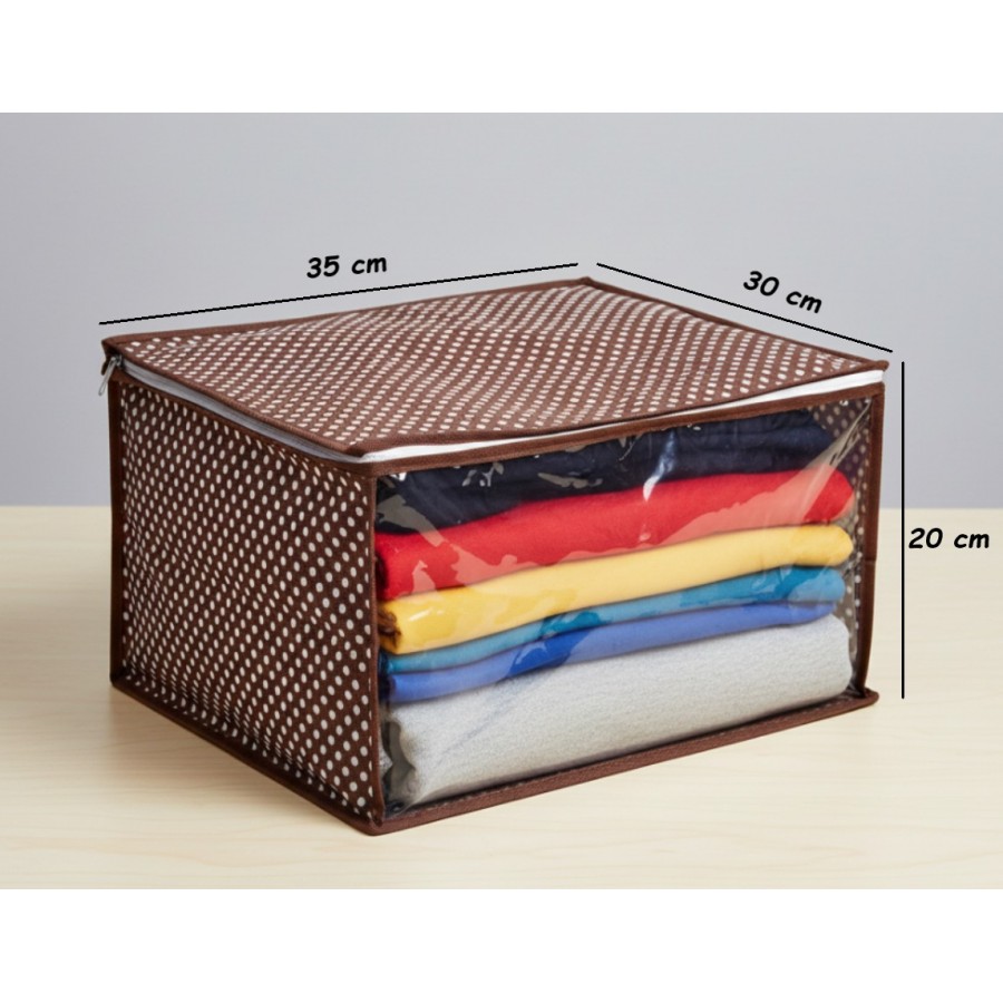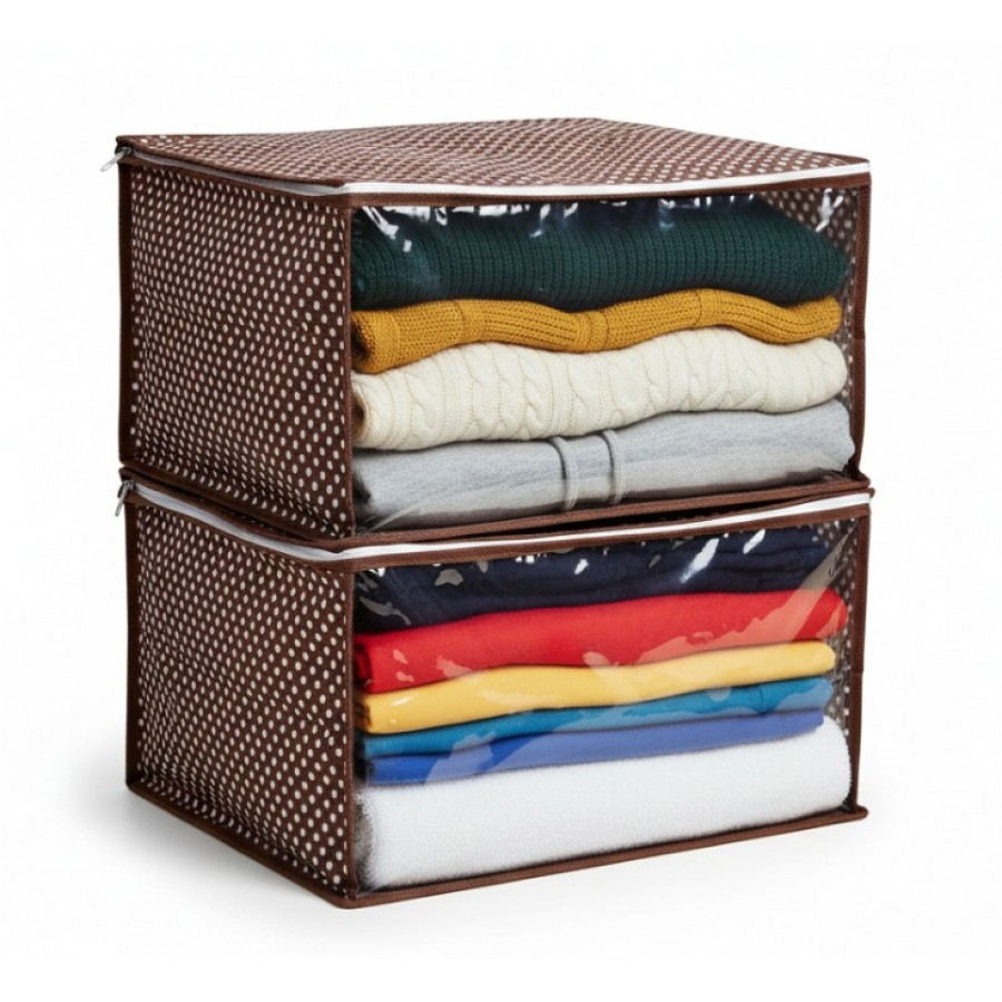 Set 2 huse, organizare si depozitare haine, fermoar, 35x30x20 cm, maro, fereastra transparenta