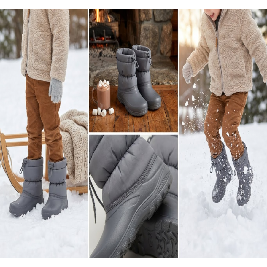 Cizmulite gri pentru copii, impermeabile, confortabile si imblanite: