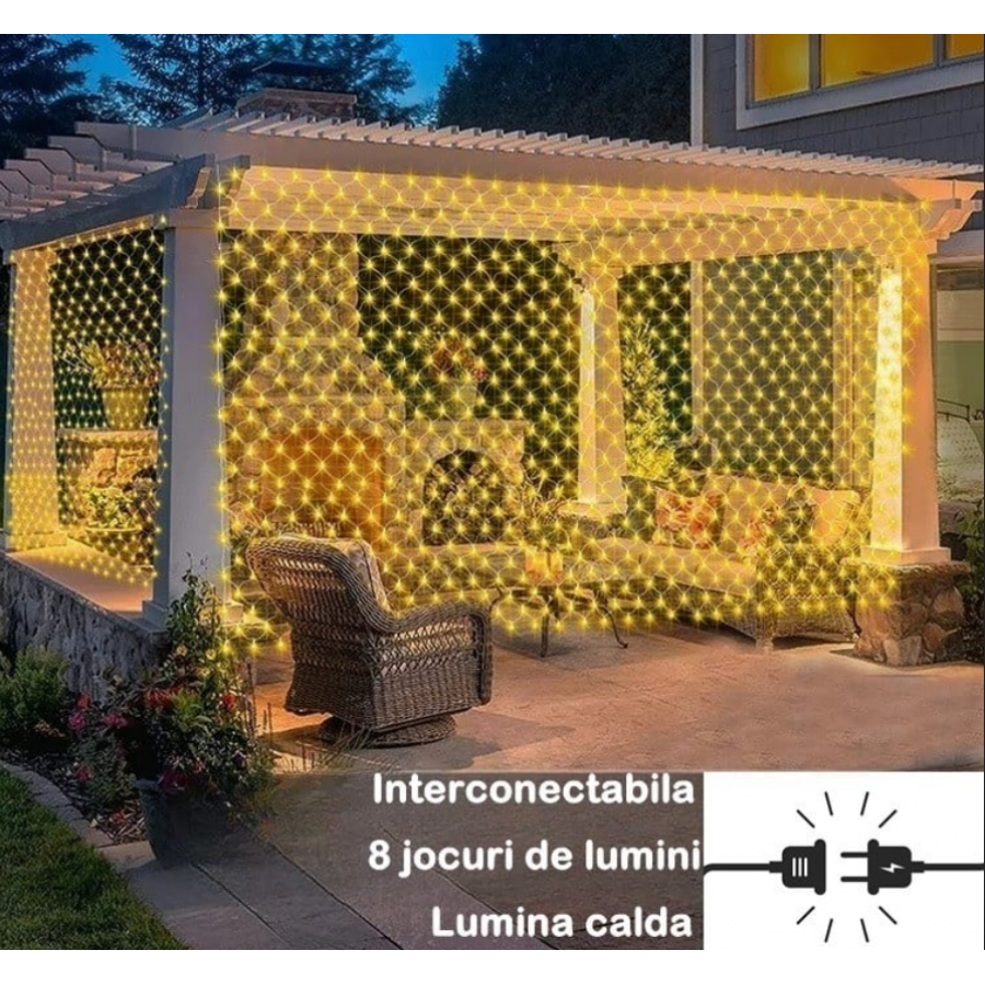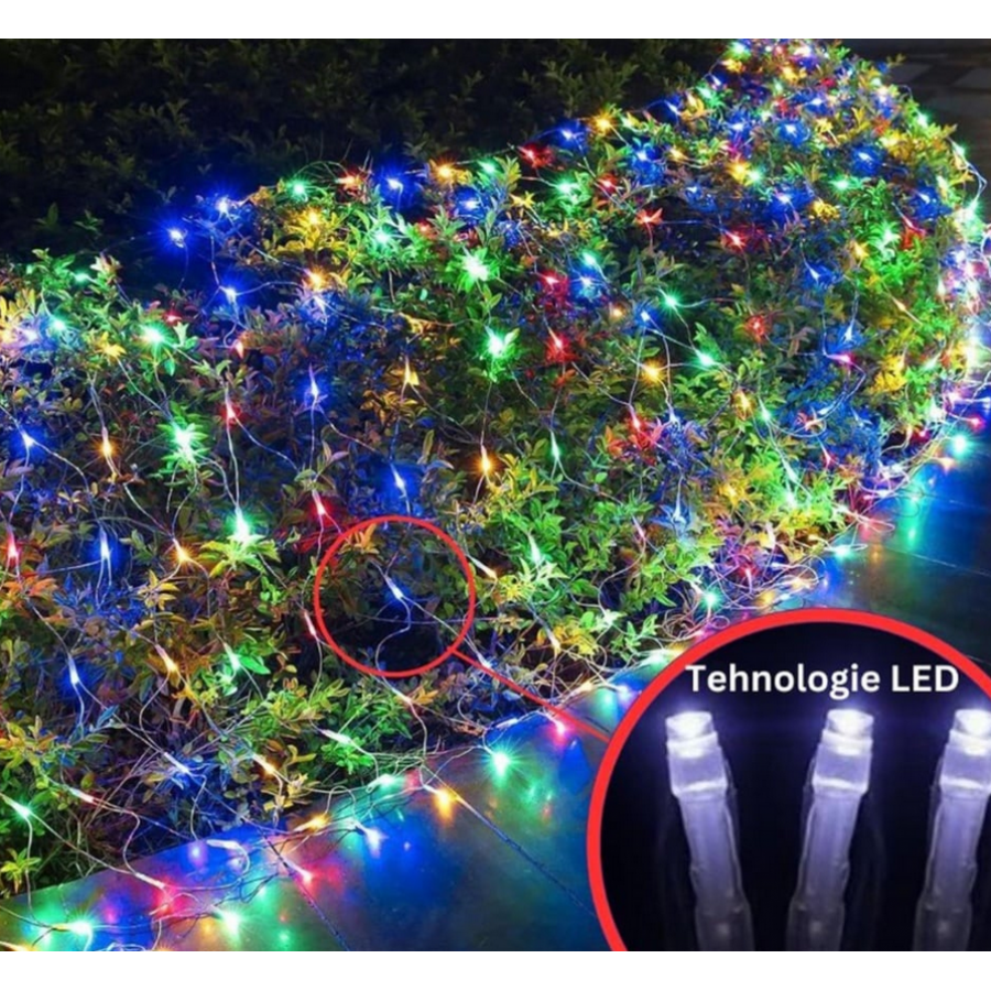 Instalatie Craciun Tip Plasa 3 m x 3 m, 360 LED-uri, 8 Jocuri de Lumini, Interconectabila, 4 culori