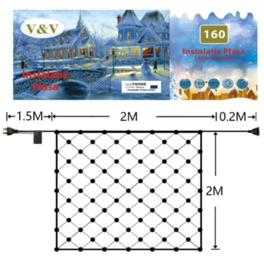 Etichete: Instalatie de Craciun Tip Plasa 2 x 2 m, 160 LED-uri, Interconectabile 3 culori, Instalatii luminoase si decoratiuni, Articole pentru casa