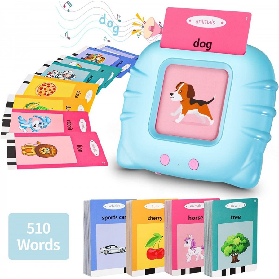 JUCARII EDUCATIVE : Jucarie educativa pentru baieti si fete de 2,3,4,5 ani. Aceasta jucarie pentru terapie logopedica include un citator de carduri si 224 cuvinte pe carduri flash cu doua fete care incorporeaza 12 subiecte precum forme, culori, animale, necesitatile zilnice, transporturi, alimente, fructe, legume, costume, natura, persoane si locuri de munca. Cartonasele si pronuntia cuvintelor sunt in limba engleza.