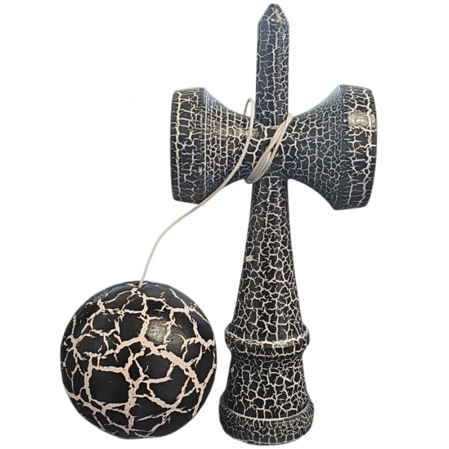 Kendama Crack din lemn 18 cm, bila 6 cm – model crapat, negru/alb