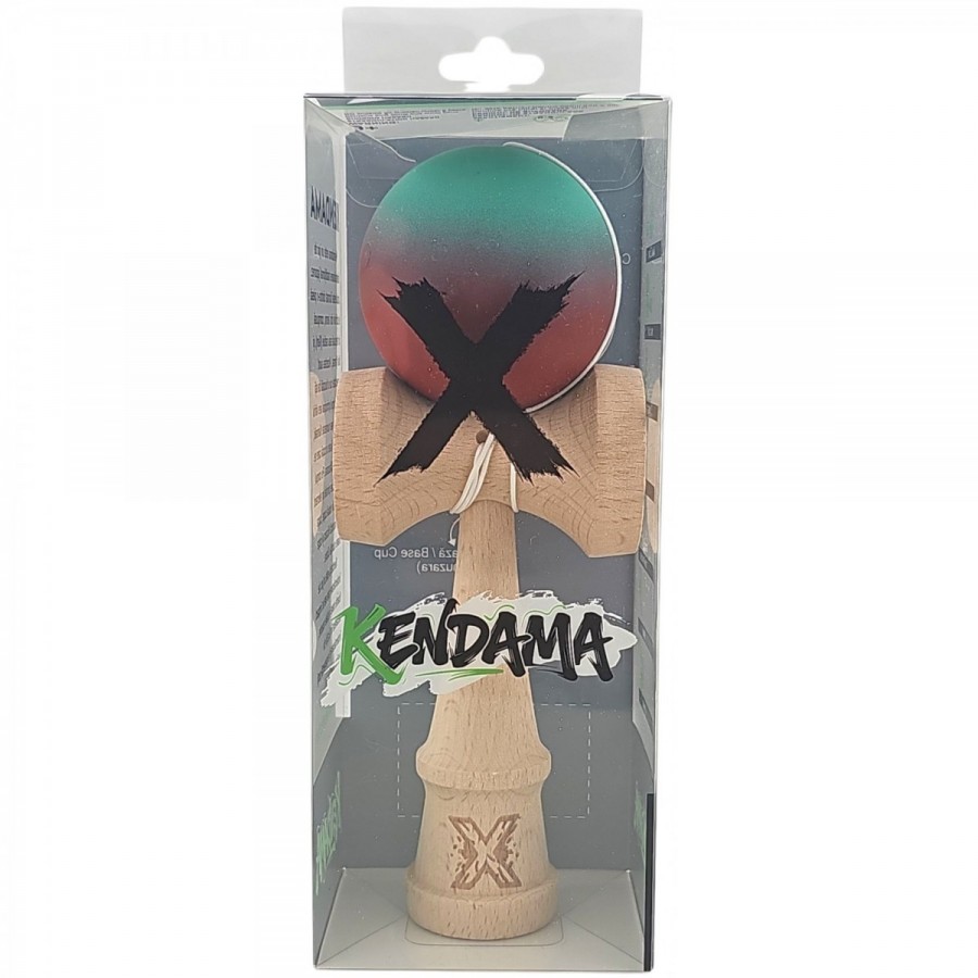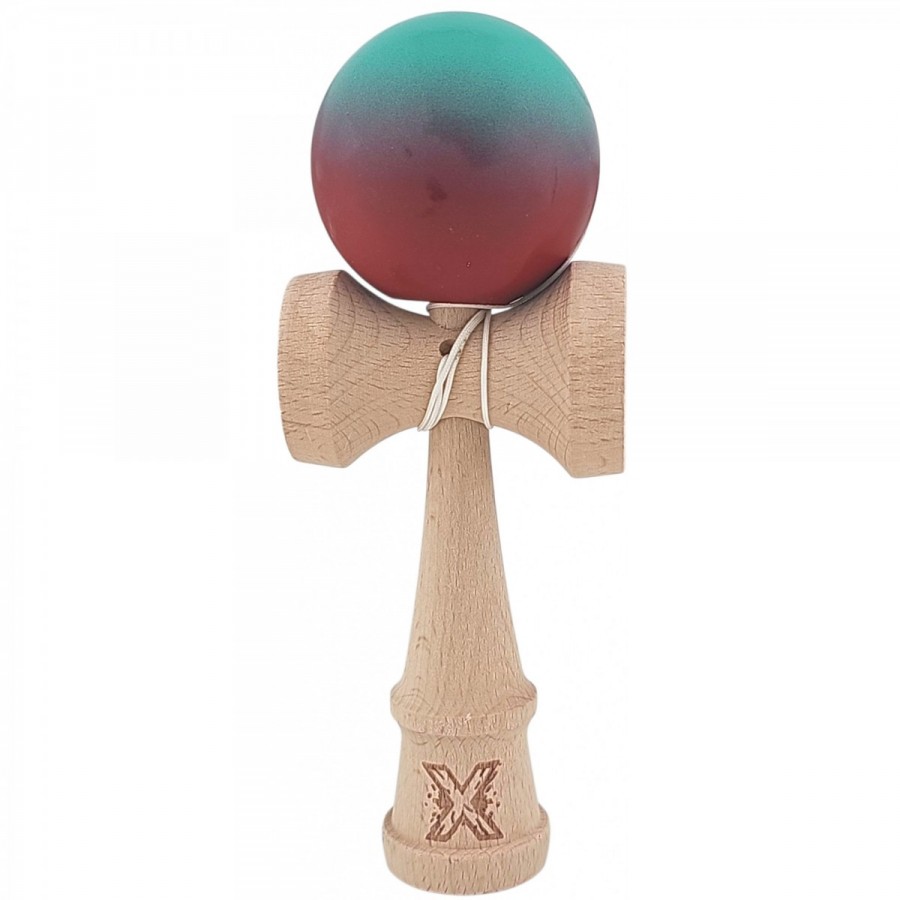 Kendama X Originala, Kendama Profesionala din Lemn, Rubber Grip, 18 cm, Rosu/Verde