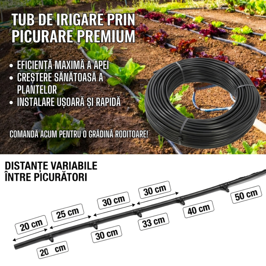 | Distanta dintre orificiile de picurare (cm) | 40 cm |