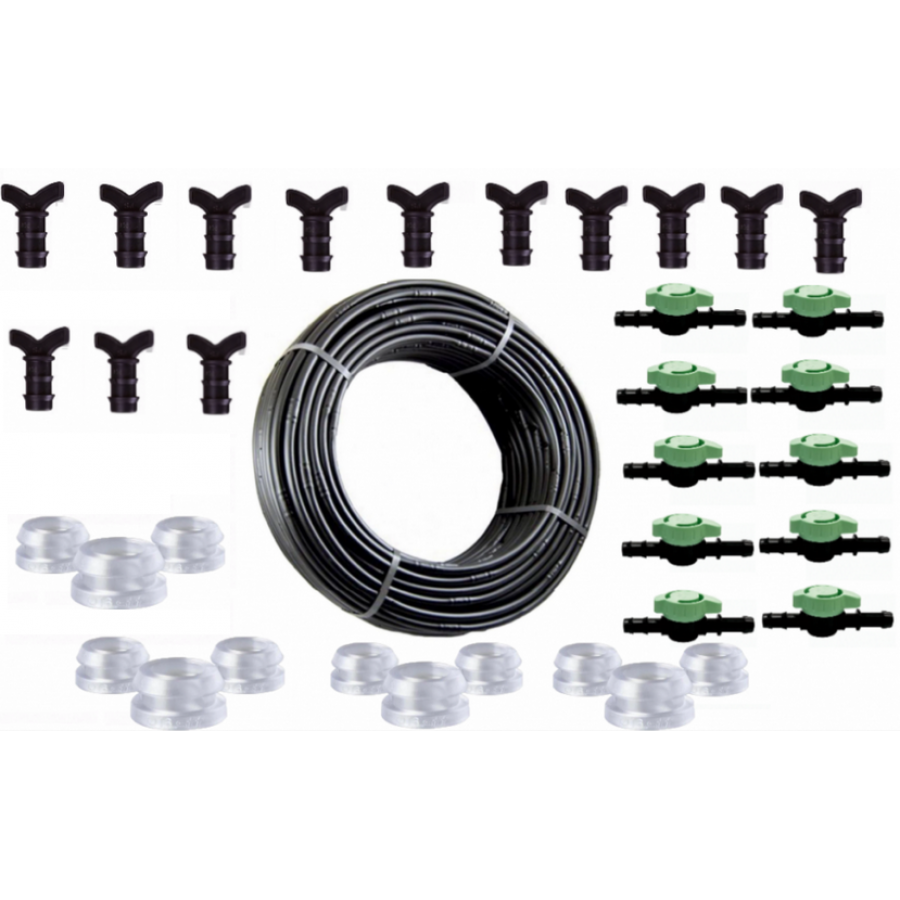Kit complet Tub de picurare cu diametru de 16 mm, rola de 100m, distanta intre picuratori de 40 cm, 4 L/h, plus 30 Accesorii GRATIS
