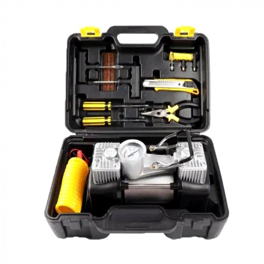 Kitul de compresor auto cu 2 cilindri este ideal pentru reparatii rapide de pana si umflare eficienta a anvelopelor in orice situatie de urgenta pe drum. Cu motor puternic 12V si design dual piston, ofera presiune rapida si performanta ridicata, fiind perfect pentru masini, motociclete, biciclete, trotinete, mingi sau saltele gonflabile.