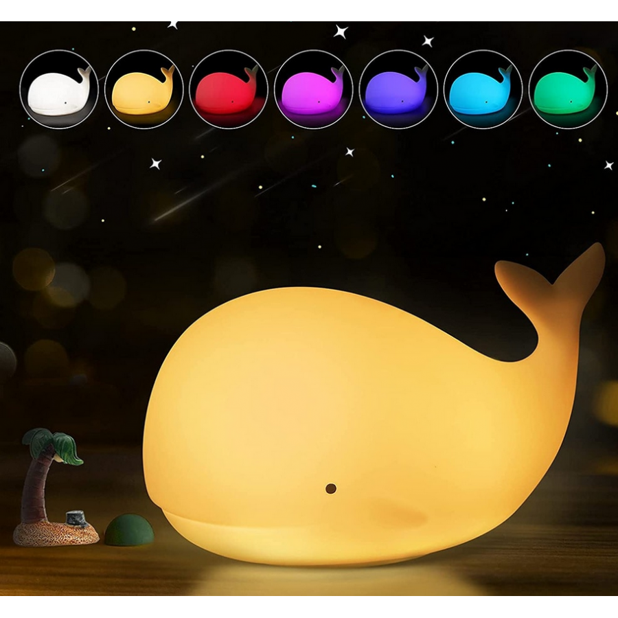 ✨ Transformă atmosfera camerei într-una caldă și relaxantă cu această adorabilă lampă de veghe în formă de balenă. Perfectă pentru camera copiilor, dar și pentru momentele de relaxare ale adulților, lampa oferă o lumină difuză și plăcută, ideală pentru somn.
