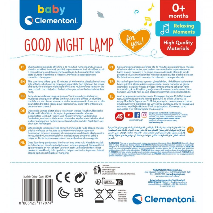 Lampă muzicală Baby Clementoni – Noapte bună, licuric | Lumină de noapte cu sunete pentru bebeluși