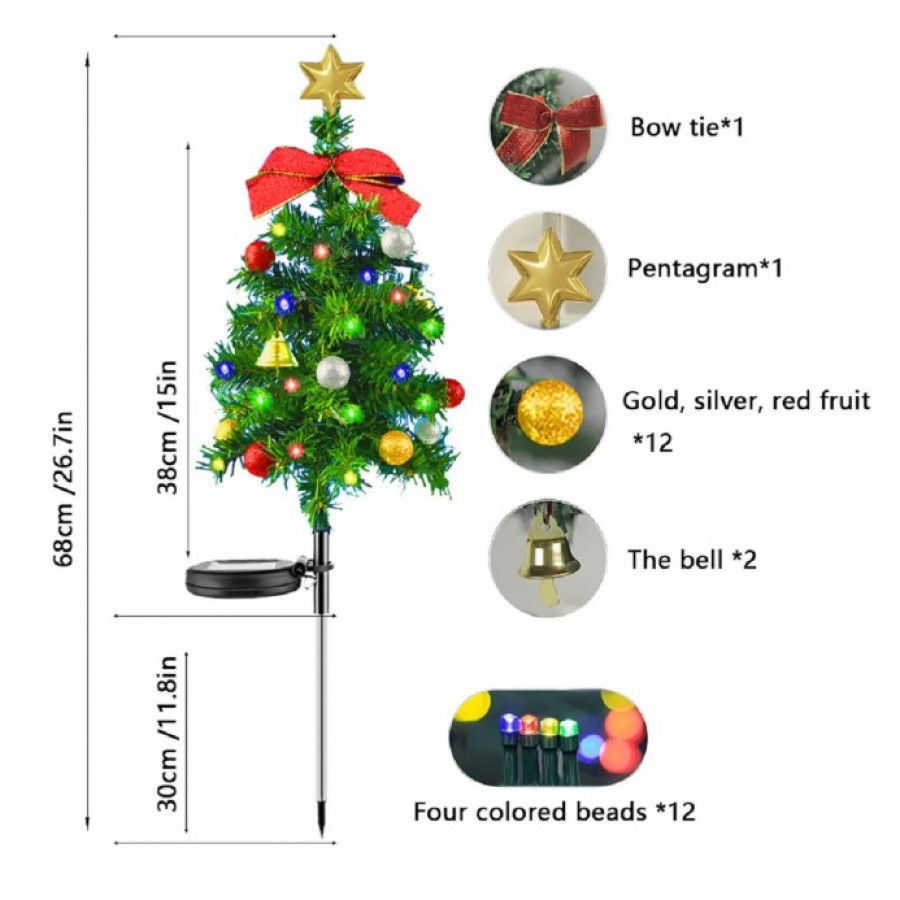 Lampa solara LED de Craciun, brad impodobit, dimensiune 68 cm