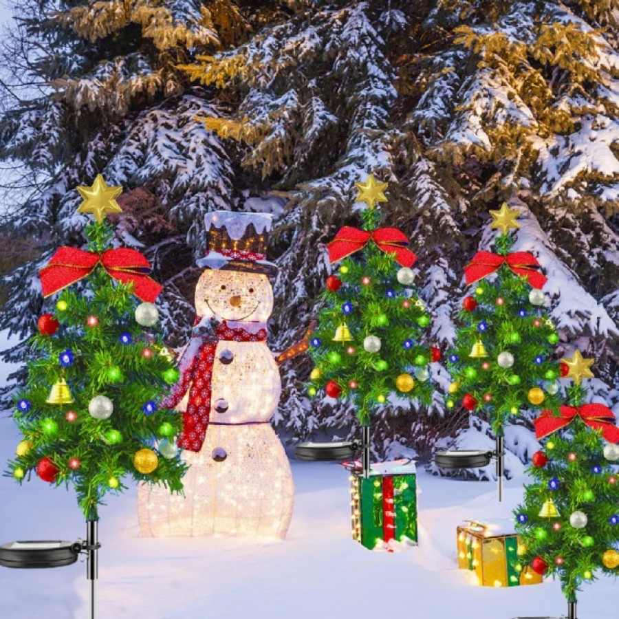 Lampa solara pentru gradina cu LED, in forma de brad, adauga un efect decorativ placut si elegant oricarui spatiu exterior. Cu o inaltime de 68 cm si lumina multicolora, aceasta lampa este ideala pentru curti, alei, terase sau gradini. Este prevazuta cu tarus pentru fixare usoara in sol si este complet waterproof, rezistenta la ploaie si conditii meteo variate. Functioneaza cu energie solara, oferind lumina ecologica si economie de energie.