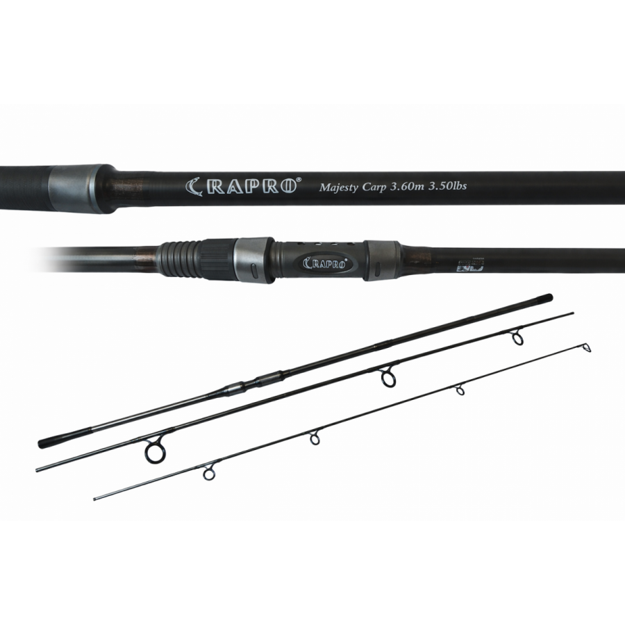Lanseta RAPRO Majesty Carp 3.60m este realizată din carbon și are o putere de aruncare de 3,50 lbs, fiind concepută pentru pescuitul crapului la distanță, cu monturi grele și lansări ferme.