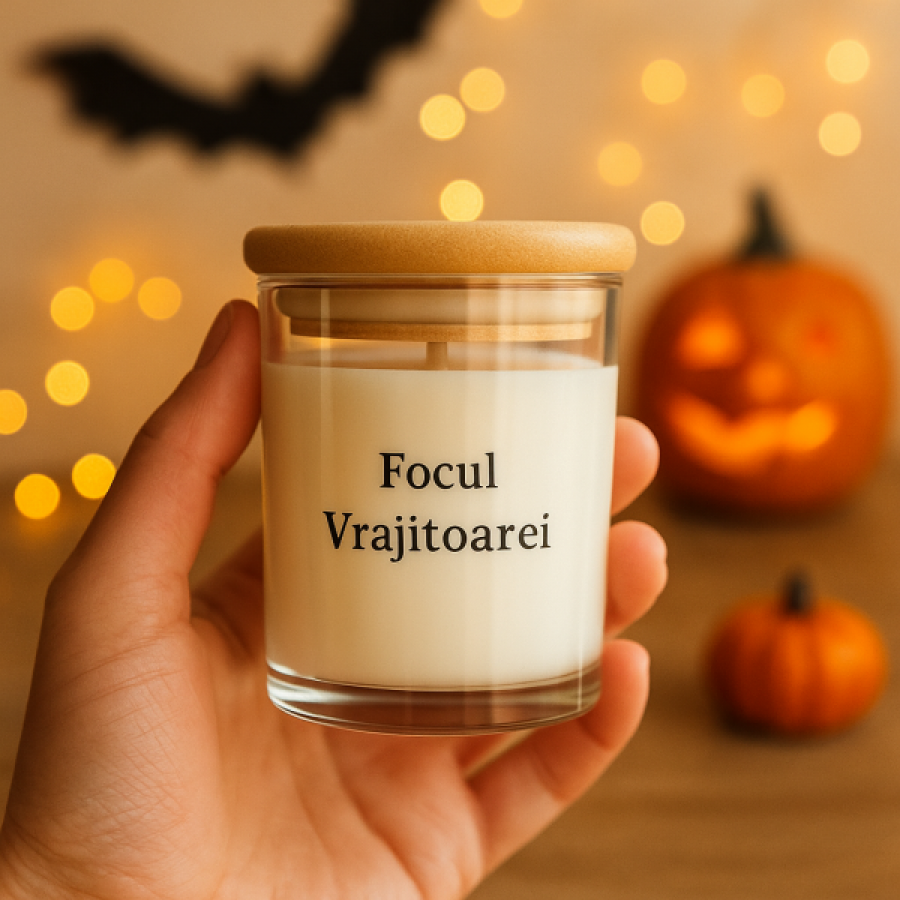 - Design magic si umoristic: "Focul Vrajitoarei" - un nume jucăus care aduce zâmbetul și un strop de vrajă pozitivă în orice spațiu, perfect pentru serile de relaxare sau ritualuri personale.
