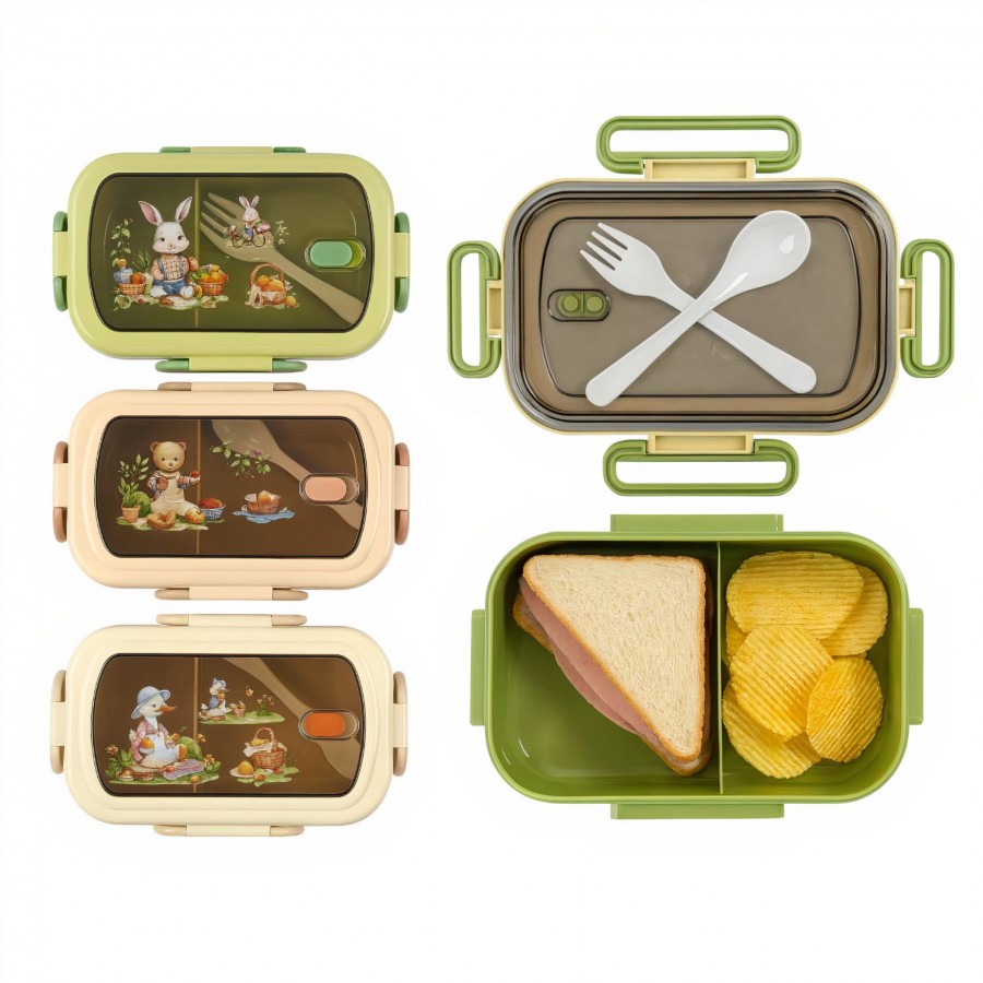 Caserola de Pranz pentru Copii 22x14x6cm, 2 Compartimente cu Linguriță și Furculiță Caserola de prânz pentru copii cu dimensiunea de 22x14x6cm reprezintă soluția ideală pentru pachețelul zilnic al celor mici, fiind conceputa special pentru a combina funcționalitatea, siguranța și un design atractiv.