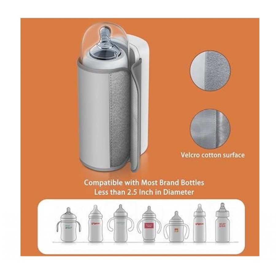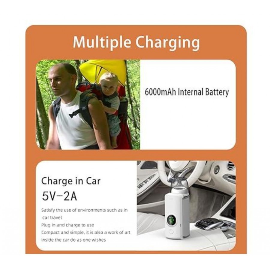 Incalzitorul portabil pentru biberoane este un accesoriu modern si extrem de util pentru parintii activi, ideal pentru calatorii, plimbari, masina sau utilizare acasa. Datorita bateriei integrate de 6000mAh, dispozitivul mentine laptele sau formula la o temperatura constanta si sigura pentru bebelus, fara a fi nevoie de apa sau de un incalzitor traditional.
