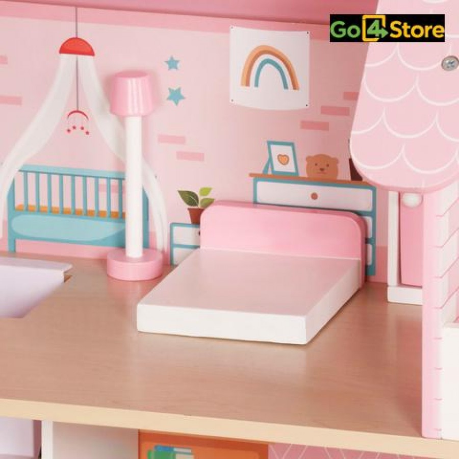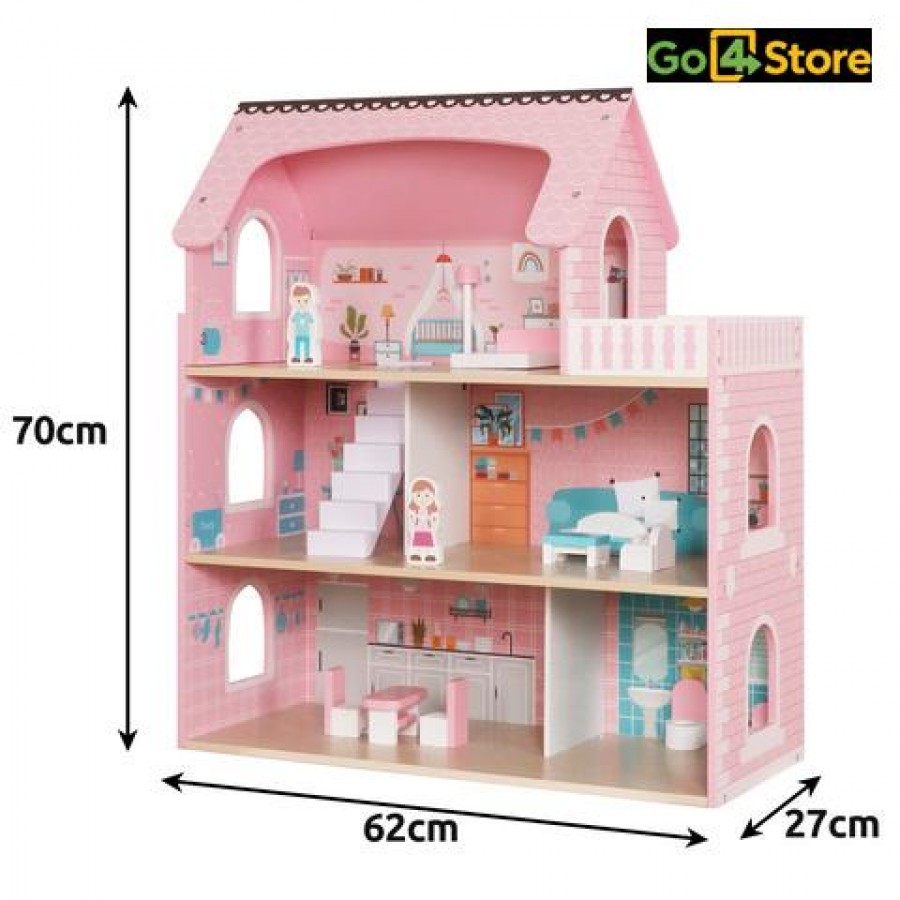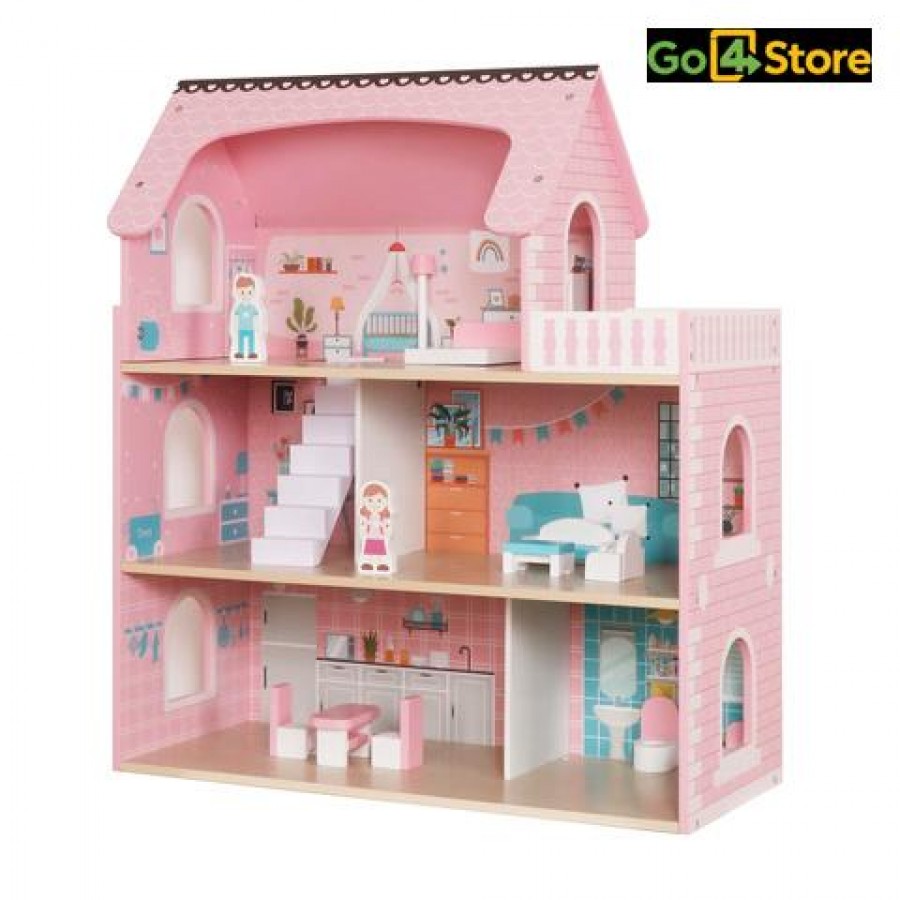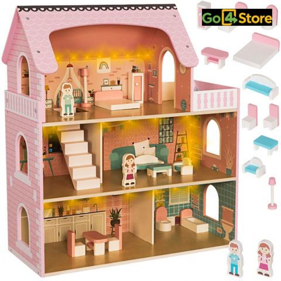 Casă de Păpuși din Lemn cu Mobilier și Iluminare LED Fă visul unei case perfecte să prindă viață cu această casă de păpuși spațioasă și elegantă de la Kruzzel! Ideală pentru cei mici, care adoră să își folosească imaginația și să-și creeze propriile aventuri acasă. Caracteristici: •Construcție solidă și sigură: realizată din lemn de calitate, atent șlefuit, fără muchii ascuțite, oferă siguranță maximă pentru cei mici. •Iluminare LED: include benzi LED cu alimentare pe baterii, care adaugă o atmosferă caldă și atmosferică fiecărei încăperi, chiar și seara. •Mobilier inclus: set complet cu elemente de mobilier – fotolii, masă, scaune, dulap, lampă și altele – gata pentru joacă imediat după asamblare. •Distribuție pe 3 niveluri: casa are 3 etaje + balcon + mai multe camere, spațiu suficient pentru mai multe păpuși sau personaje. •Dimensiuni generoase: aproximativ 62 × 27 × 70 cm, greutate ~7,3 kg – stabilă și spectaculoasă în orice cameră de copil. Ce primești în pachet: •Casa de păpuși Kruzzel (3 niveluri + balcon) •Mobilier complet (mesa, scaune, canapea/fotolii, dulap, lampă etc.) •Iluminare LED cu efect atractiv •Instrucțiuni vizuale de asamblare Beneficii și amp; motive să alegi acest produs: •Stimulează creativitatea și abilitățile imaginare ale copilului •Joacă educativă, cu posibilitatea de organizare a spațiului interior •Adecvat pentru decor – design frumos și culori plăcute •Cadoul ideal pentru ocazii speciale (zi de naștere, Crăciun etc.) Recomandări de utilizare și întreținere: •A se folosi sub supravegherea unui adult, mai ales în faza de asamblare •A se curăța cu o lavetă moale; evită substanțele agresive sau apa în exces •Dacă sunt utilizate baterii, verifică starea lor periodic și înlocuiește la timp