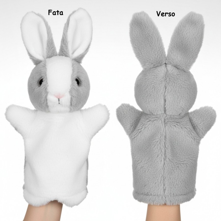 Etichete: Marioneta din plus, model iepuras, alb/gri, 28 cm, Jucarii și jocuri educative, Lumea Copiilor