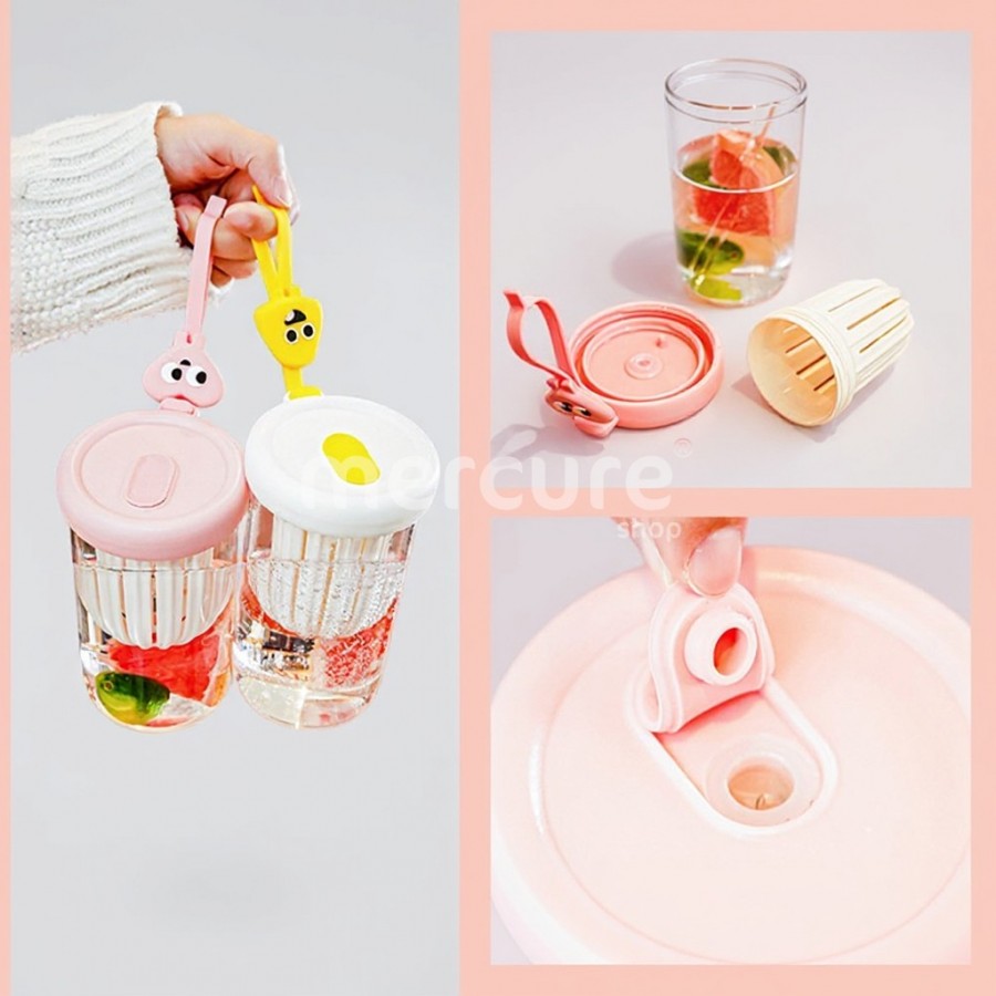Pahar din silicon, cu pai, pentru copii, anti-cadere, compartiment fructe/ceai/gheata, 500ml, roz