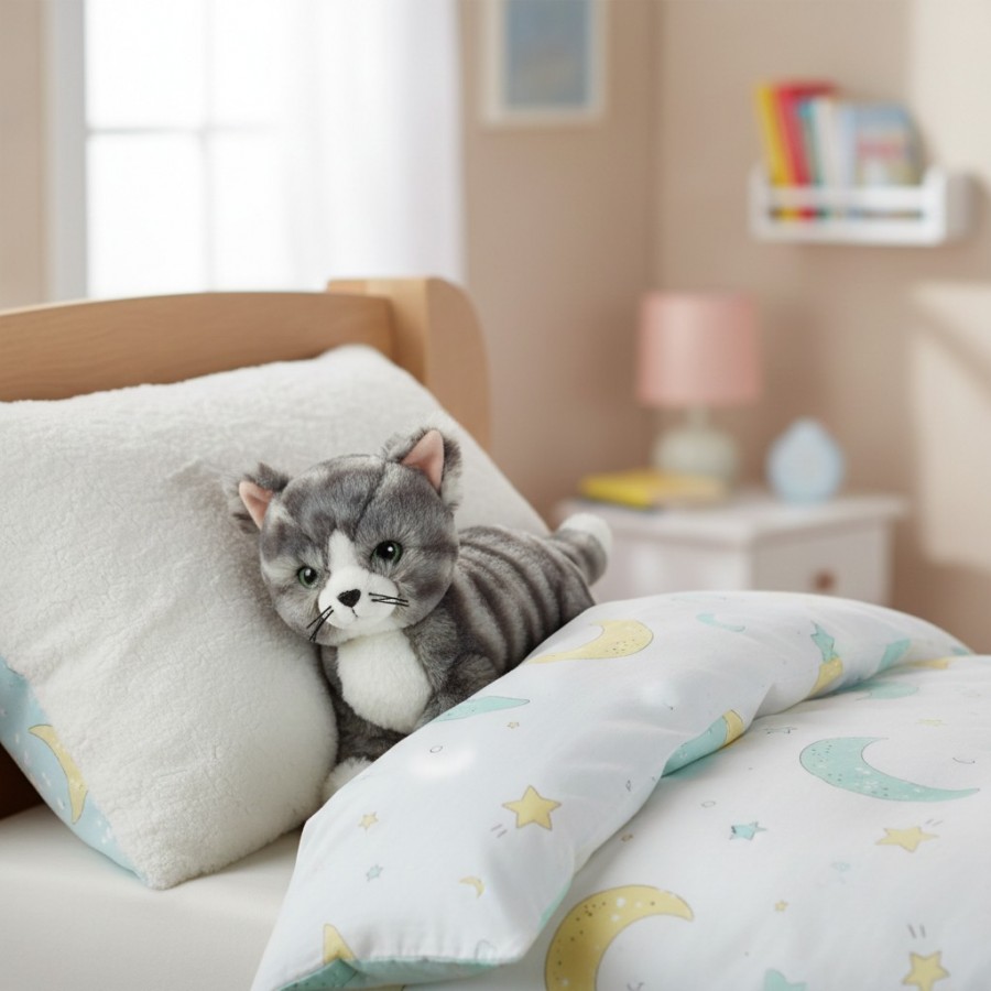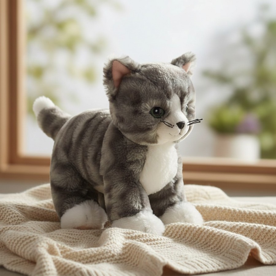 Fie ca este un cadou pentru cei mici sau un companion dragalas pentru iubitorii de pisici, aceasta jucarie pufoasa aduce zambete si momente de bucurie.