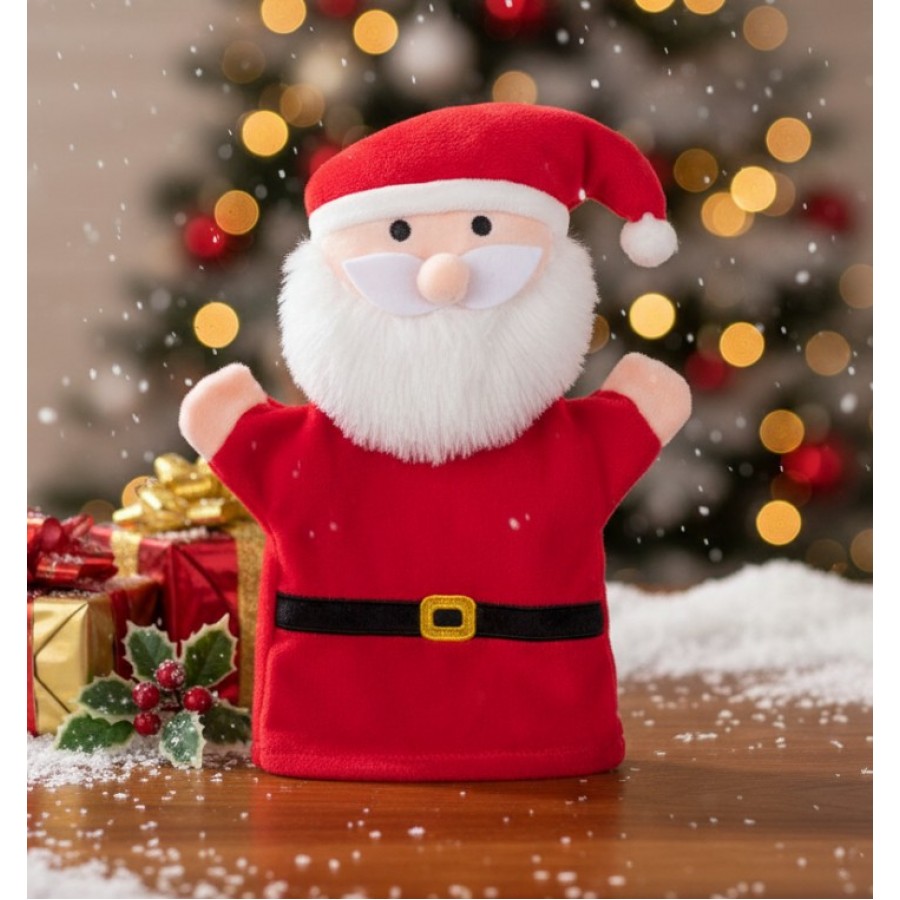 Mos Craciun vesel si prietenos, perfect pentru a aduce magia sarbatorilor in jocurile copiilor. Fabricata din material moale si catifelat, este placuta la atingere si usor de manevrat, ideala pentru spectacole de teatru de papusi sau activitati creative de iarna.
