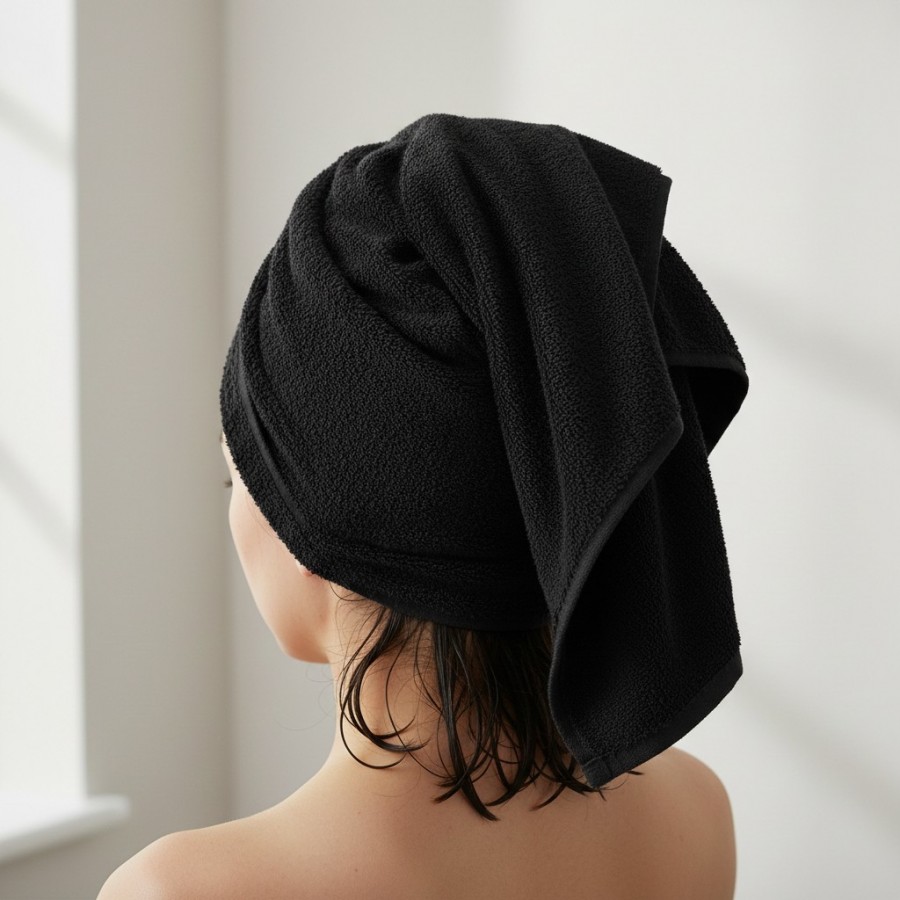 Set 4 buc prosop moale, bumbac 100%, marime medie, 70x50 cm, negru, pentru fata, maini sau par