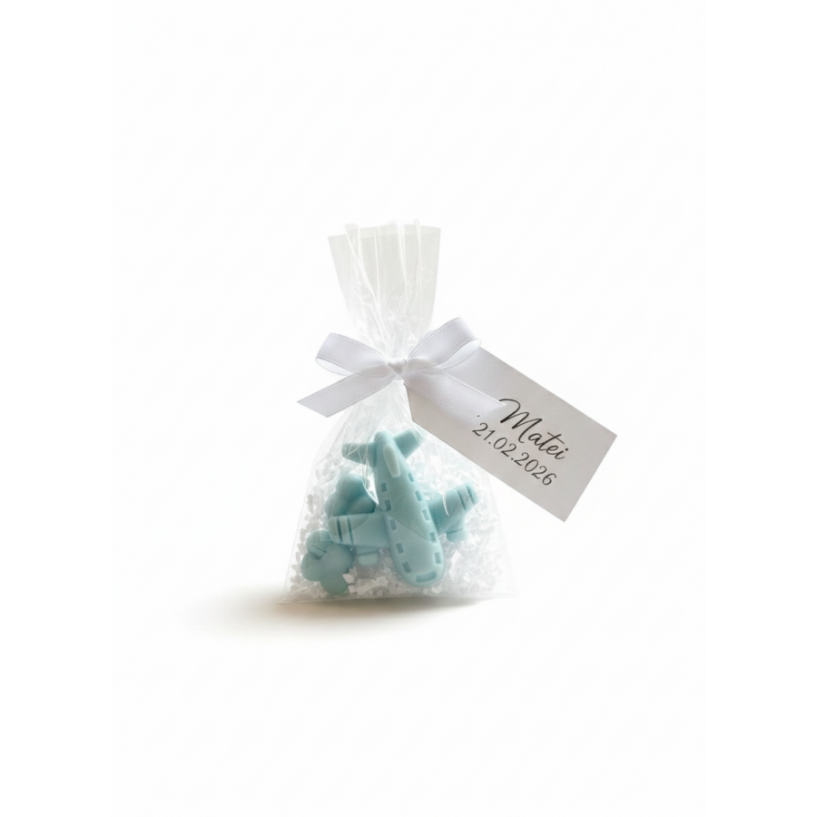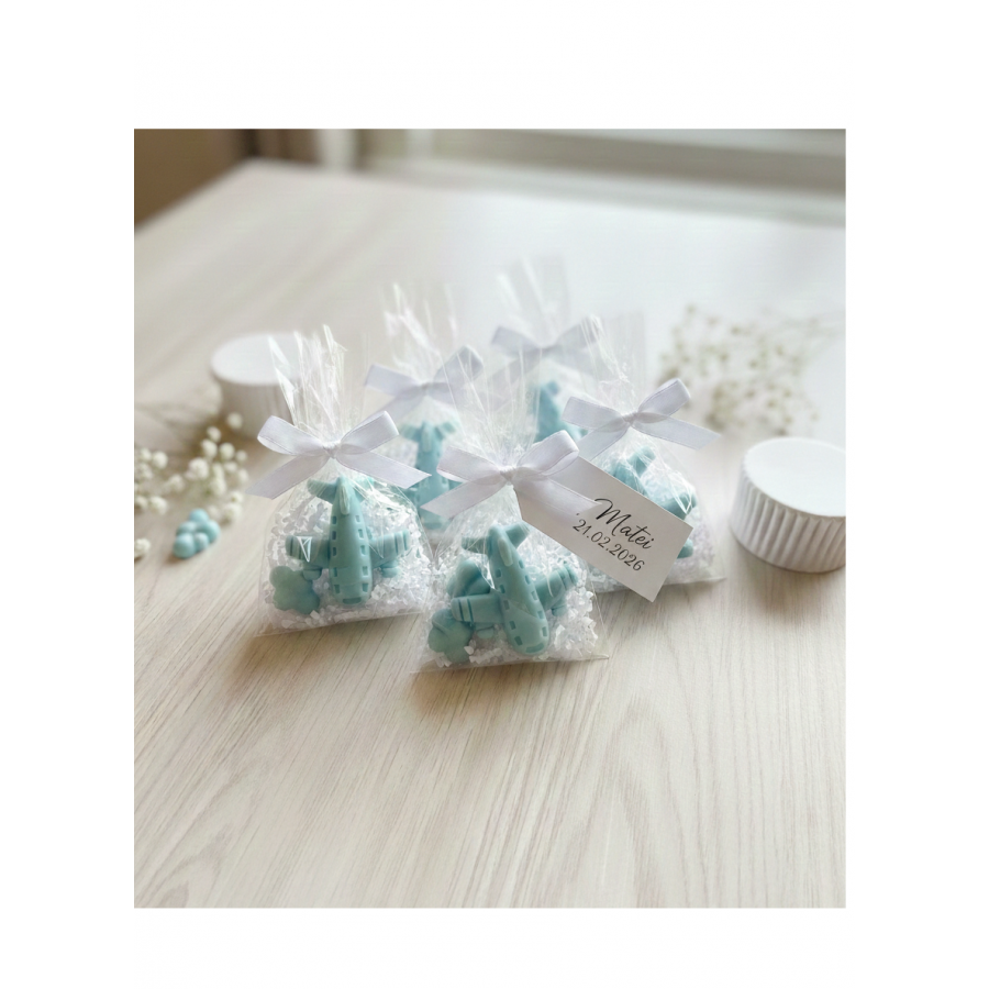 Mărturie Botez Parfumată din Ceară de Soia – Avion cu Norișori-cartonas personalizabil