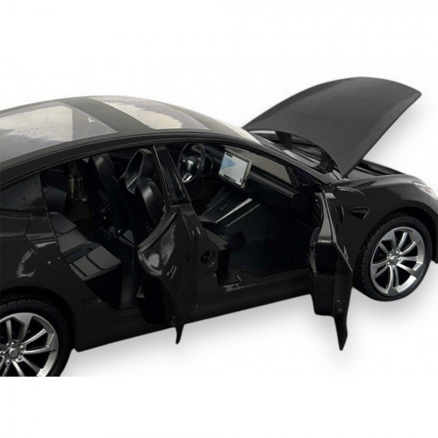 Masinuta metalica 20 cm, 1:24 Tesla Model 3, negru, deschidere usi, lumini si sunet