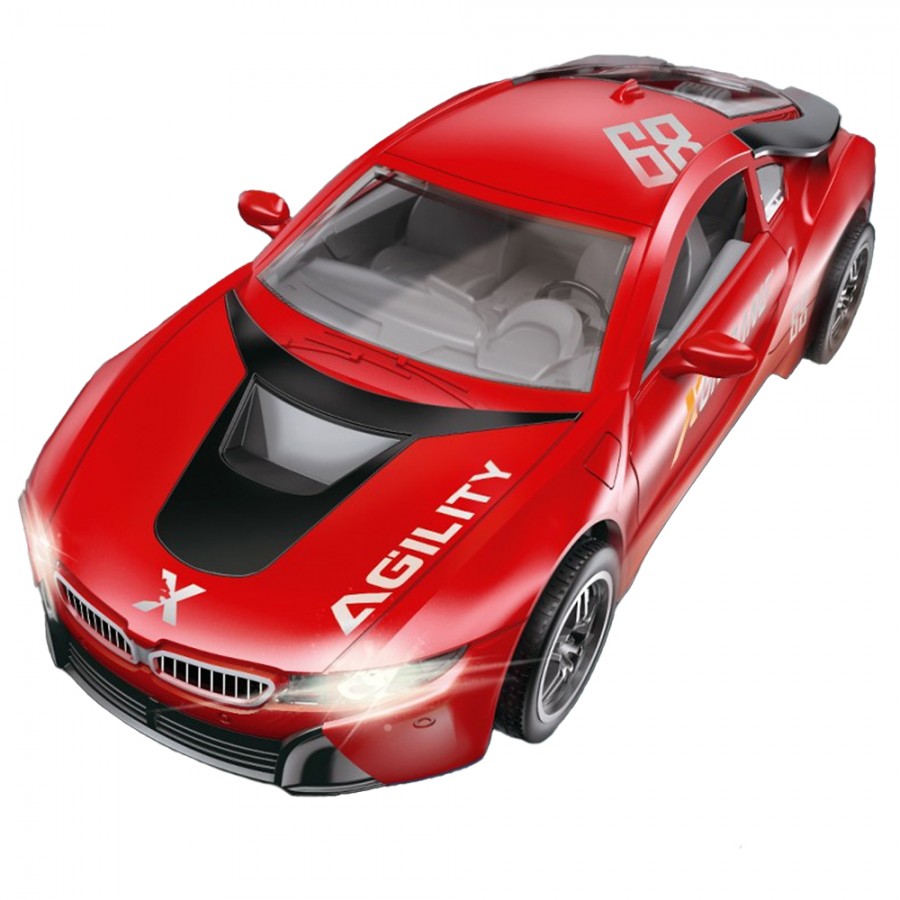 Masinuta sport cu radiocomanda, lumini, sunete 20 cm incarcare USB rosie