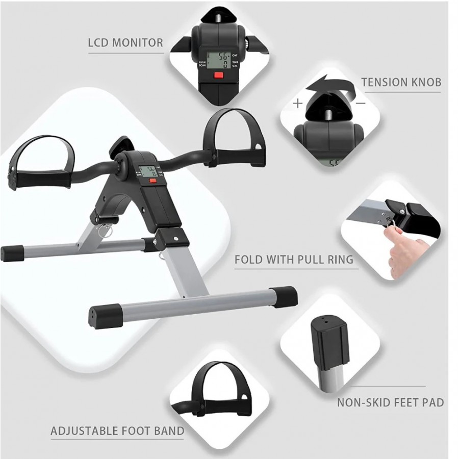 Mini bicicleta de antrenament pentru maini si picioare, inaltime reglabila, afisaj LCD
