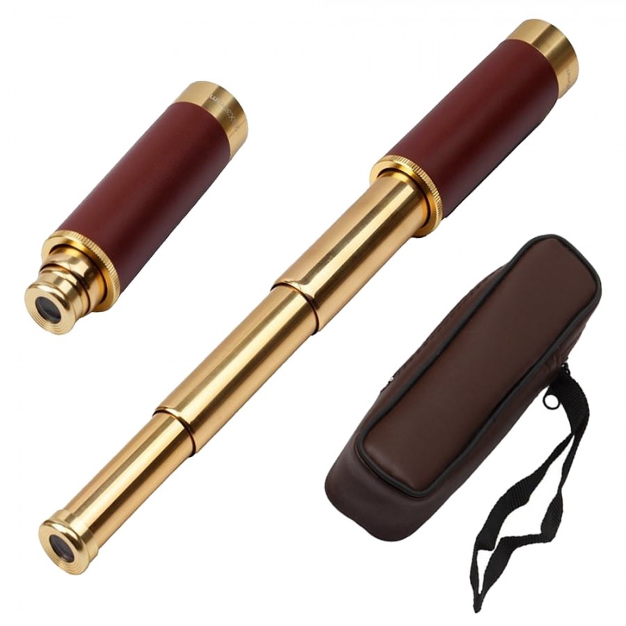 Un telescop elegant, cu aspectul sau care aminteste de vremurile navigatiei pe mare si descoperirii de noi tinuturi.