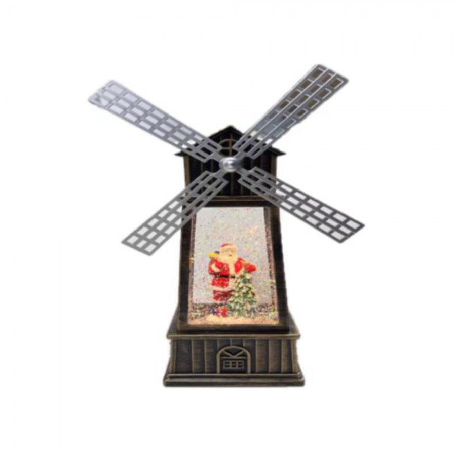 Moara de Vant Craciun, Decoratiune LED, Mos Craciun cu Brad, Muzicala, Efect Ninsoare, Cadou, Unibox