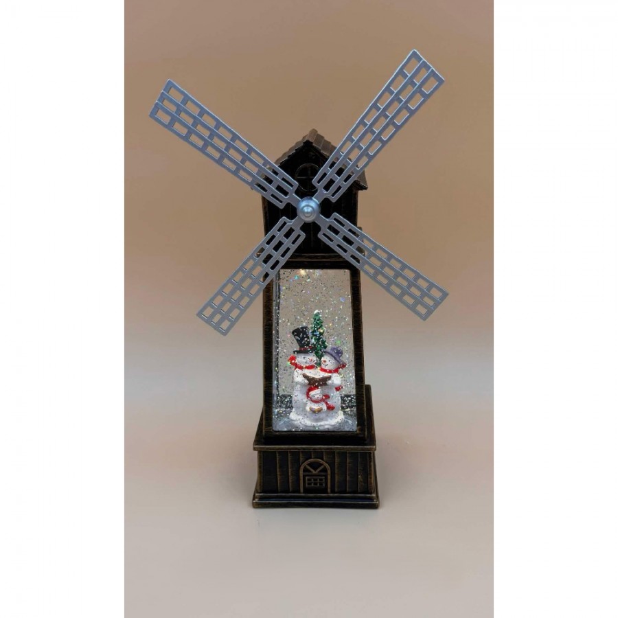 Moara de Vant Decorativa Craciun, Oameni de Zapada, Efect Ninsoare, Iluminare LED, Muzicala, Unibox