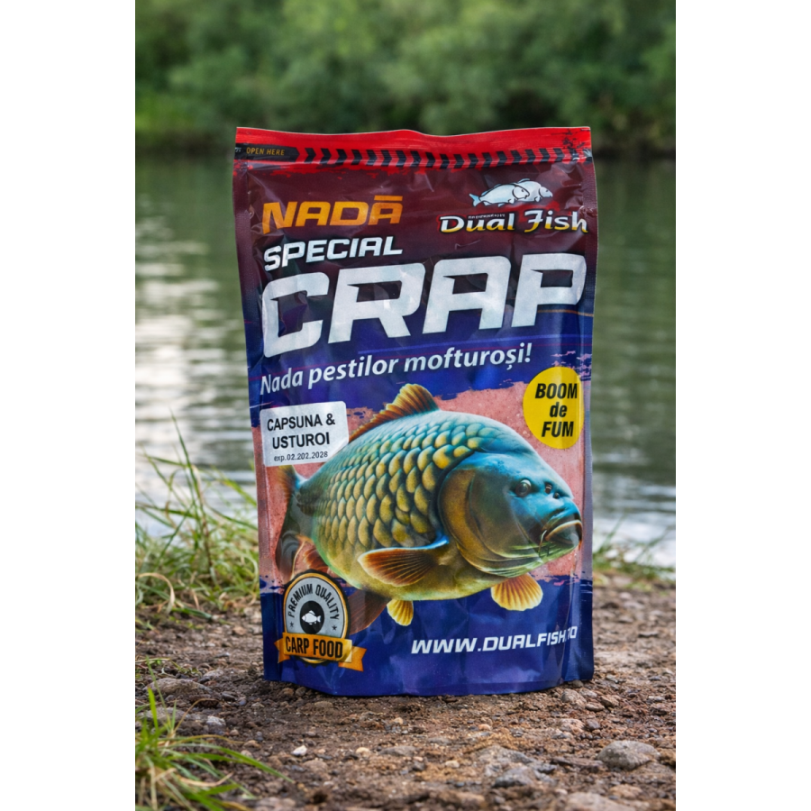 Nada crap BOOM DE FUM Capsuna si Usturoi 1kg Dual Fish fumigena atractie instant crap mare