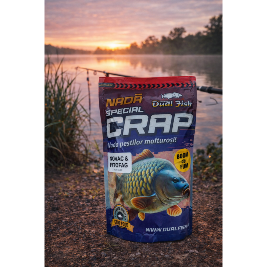 Dacă vrei o partidă reușită folosește nada Nada pentru crap BOOM DE FUM Novac si Fitofag 1kg Dual Fish Nada