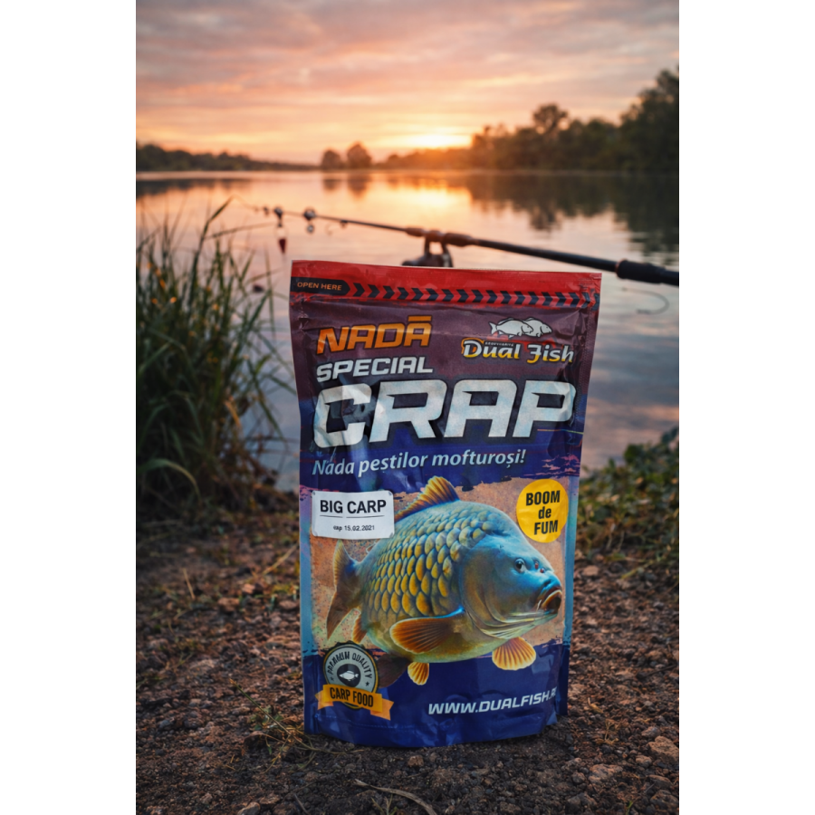 Dacă vrei o partidă reușită și crap activ pe vad, folosește Nada pentru crap BOOM DE FUM Big Carp 1kg Dual Fish Nada. Diferența se vede din primele lansări.