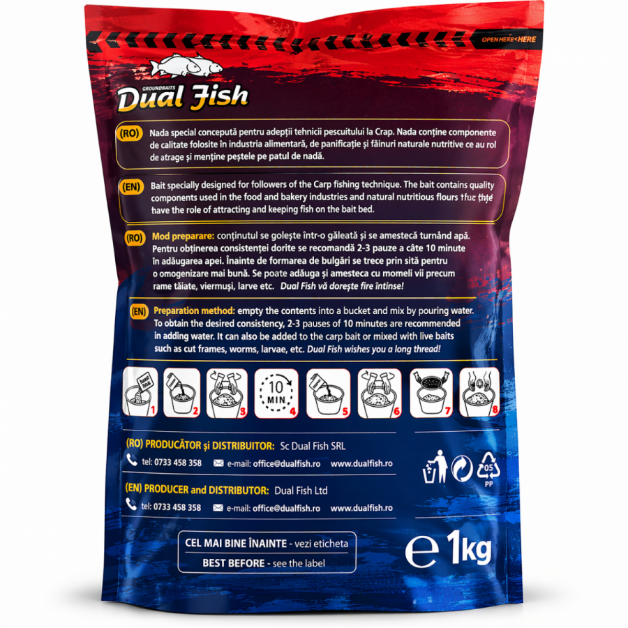 Dacă vrei o partidă reușită folosește nada Nada pentru crap BOOM DE FUM Insecte si Libelule 1kg Dual Fish Nada