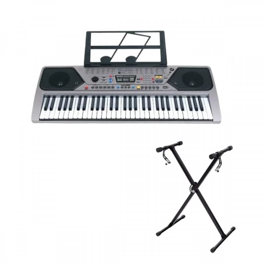 Orga electronica si stativ DEPOX®, intrare USB, mini-microfon, suport partitura inclus, argintiu