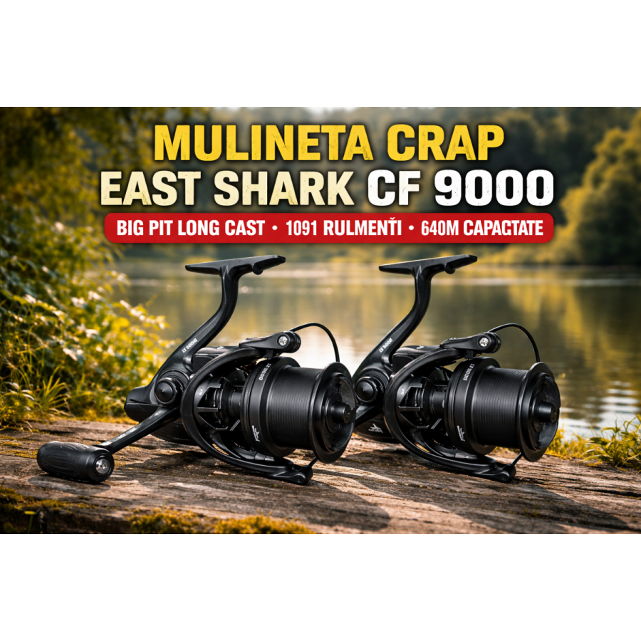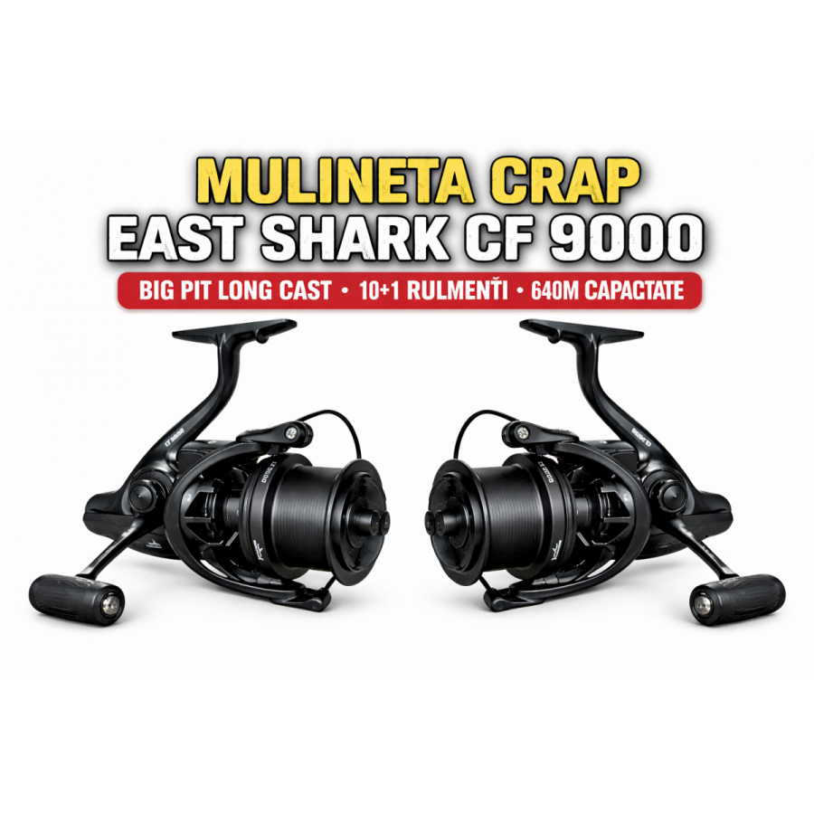 Pachet 2 x Mulineta Crap East Shark CF 9000 Big Pit Long Cast, 10+1 Rulmenti, Worm Shaft, Fast Drag, 640m, 4.6:1