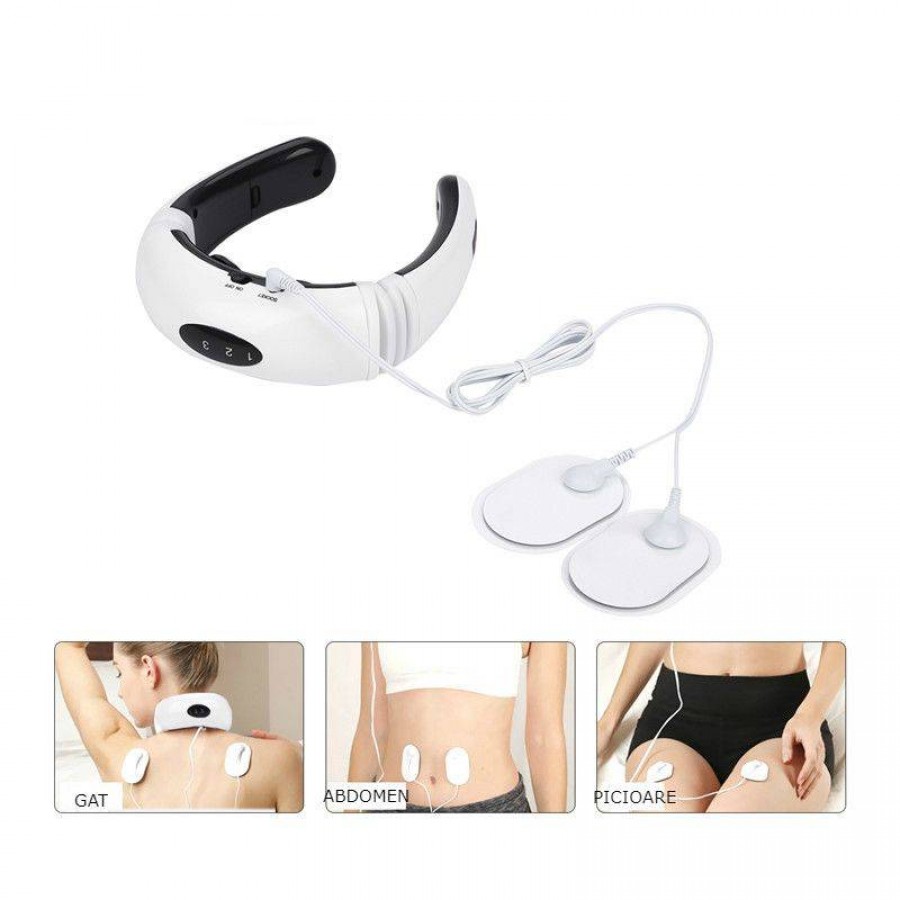 Aparatul maseaza zona gatului si stimuleaza coloana vertebrala si ceafa prin impulsuri electromagnetice.