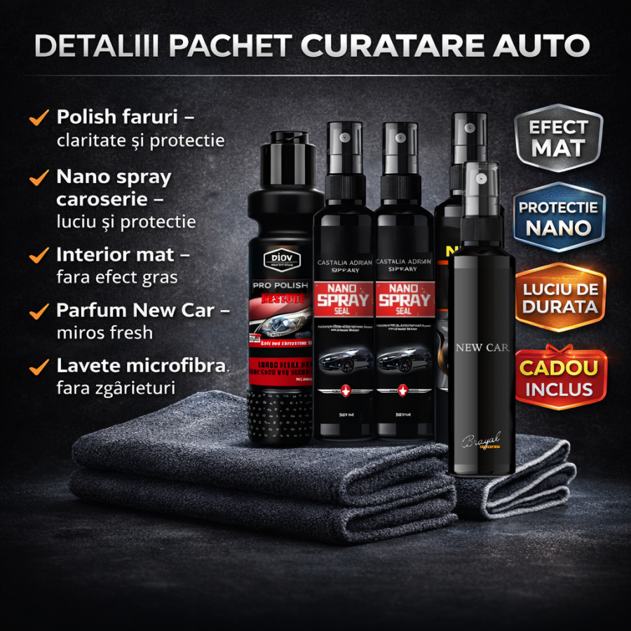 Pachet Detailing Auto Stralucire Completa Interior & Exterior + Cadou Parfum New Car si 3 lavete