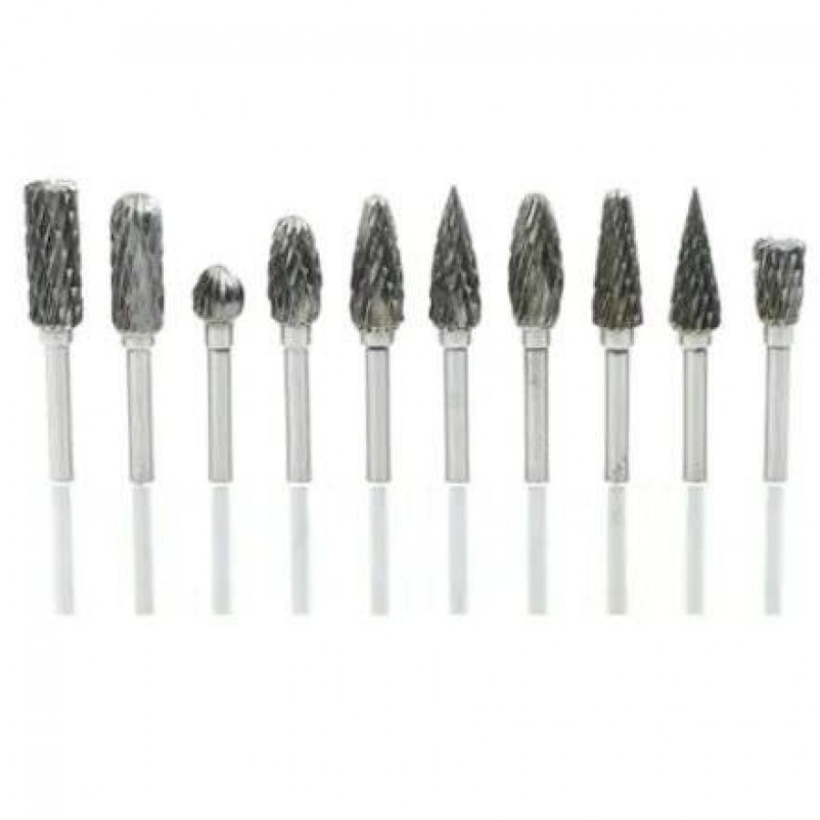 Setul conține 10 freze din carbură de tungsten, compatibile cu o gamă variată de echipamente precum biaxuri, bormașini, freze de precizie sau scule tip Dremel.