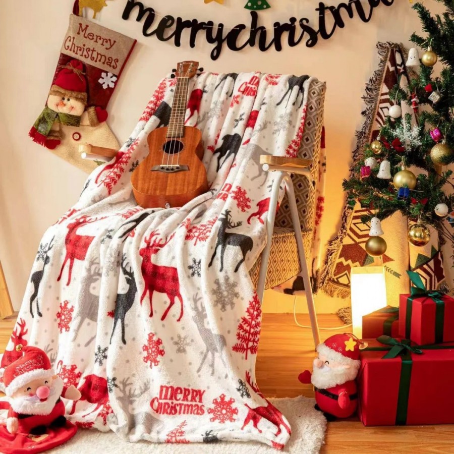 Adu magia Craciunului in dormitorul tau cu aceasta patura cu blanita, decorata cu motive festive. Cu dimensiunea de 150x200 cm, aceasta iti ofera atat caldura, cat si un decor sarbatoresc, perfect pentru serile de iarna.