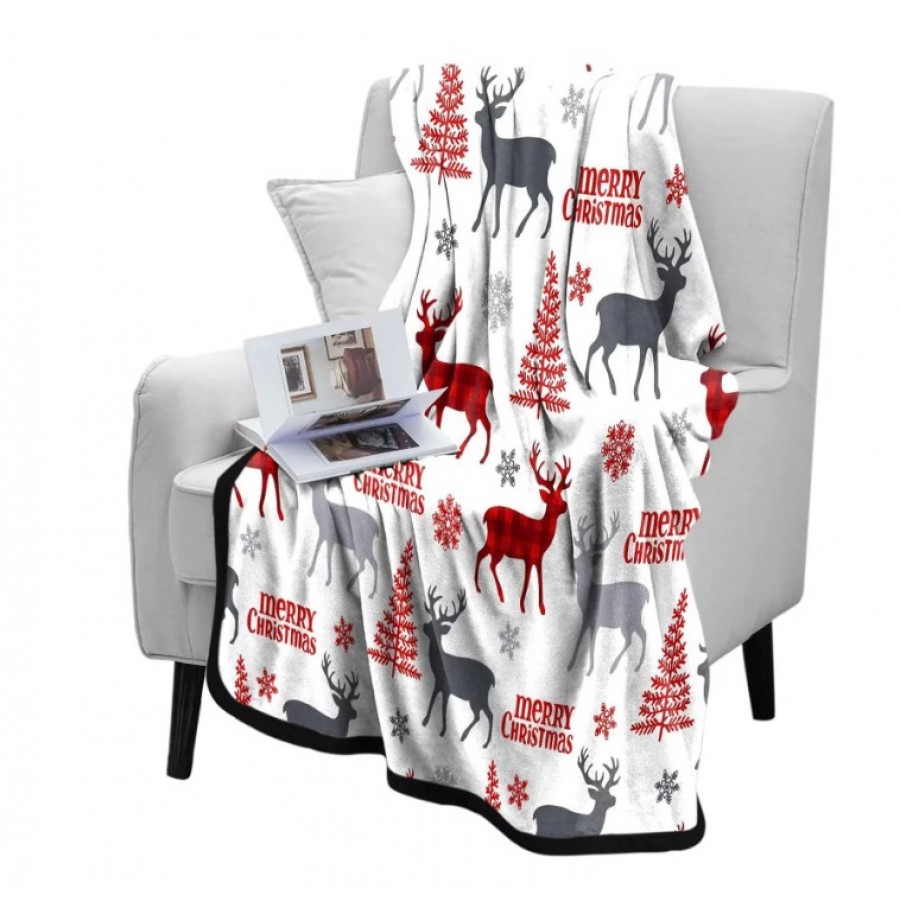Etichete: Patura cocolino cu blanita Merry Christmas, 150x200 cm, model fulgi de zapada si reni, Textile si Covoare, Articole pentru casa