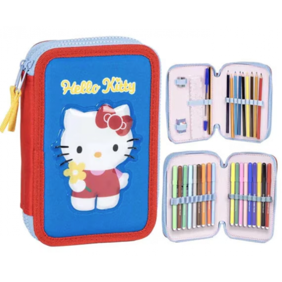 Penar complet echipa Hello Kitty cu 2 compartimente, 30 piese | Penar echipat școlar pentru fete